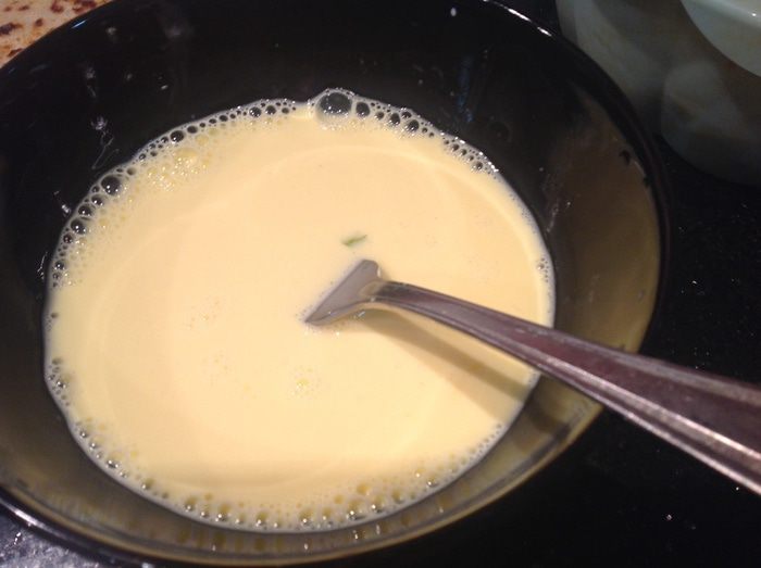 Яйца взбейте со сливками, посолите и поперчите.