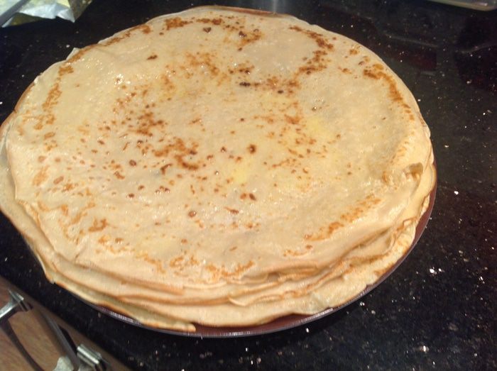 На раскаленной сковороде смазанной растительным маслом пожарьте блины. Складывайте стопочкой смазывая сливочным маслом.