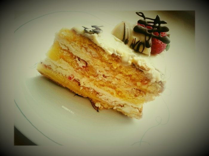 Бисквит разрезать на 3 коржа. Сначала корж пропитать 2 ст. ложками амаретто, затем клубничной пропиткой, оставить на 30 минут.