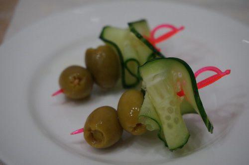 У нас уже приготовленные маслины с огурцом