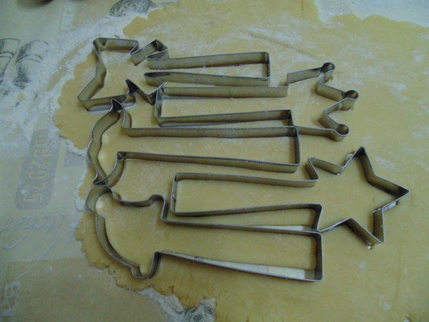 Тесто раскатать толщиной 0,5 см. Необходима мука на посыпку. Формочками вырезать печенье. Посыпать сахаром и корицей по вкусу.