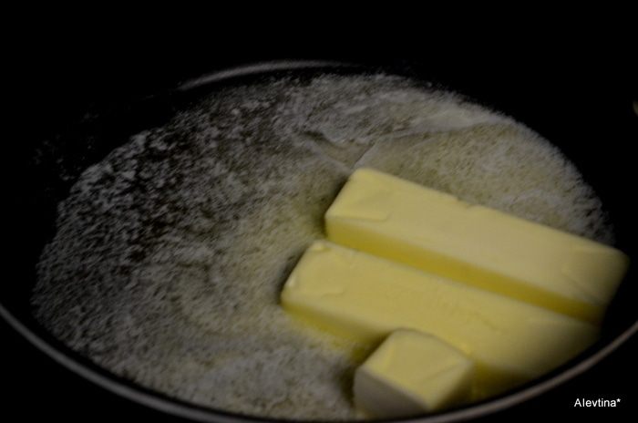 На противопригарной сковороде растопим сливочное масло на медленно -среднем огне. Помешиваем деревянной ложкой примерно 15 мин. или как начнет приобретать коричневый цвет. Снимем с огня и перельем в емкость, дадим остыть, закроем крышкой и поставим в морозильник примерно на 20 мин.