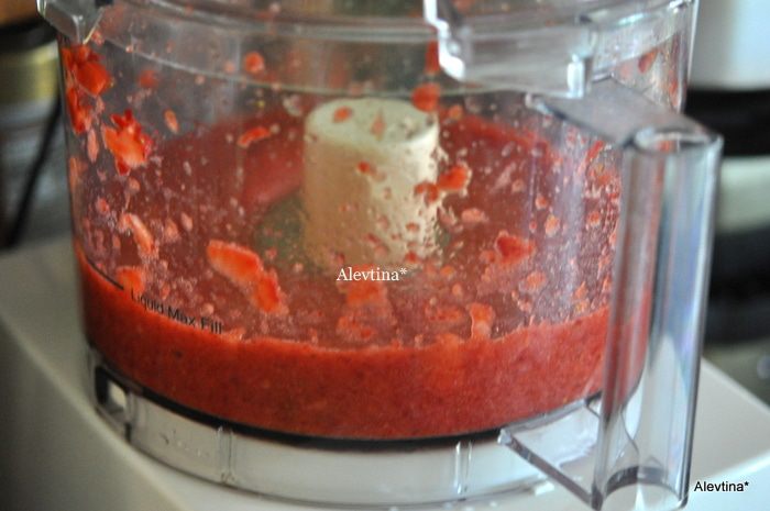 В кухонном процессоре прокрутить очищенную клубнику до состояния пюре.