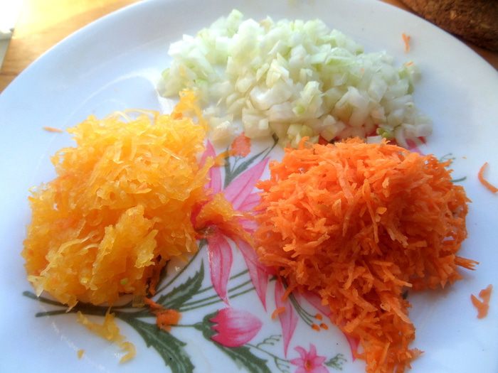 На самом деле совсем обыкновенные добавки в моих котлетках: тыква,морковка,шпинат,лук...Всего по-немногу ...и семья получит к сытному мясному обеду полезные овощи))