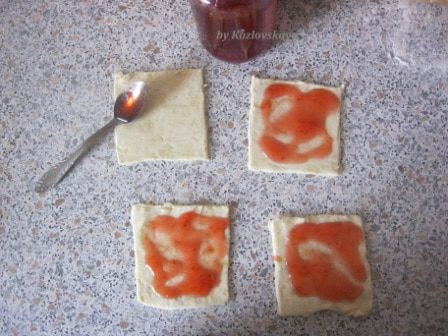 Намазать джемом или густым вареньем.