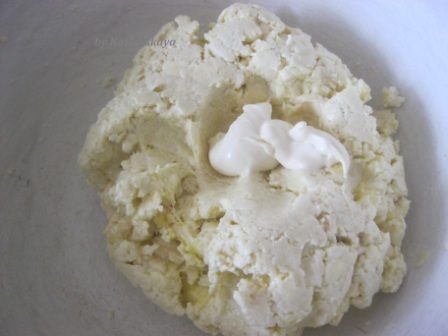 Сметаной замесить тесто.