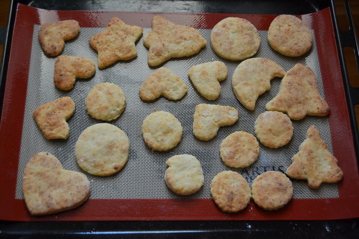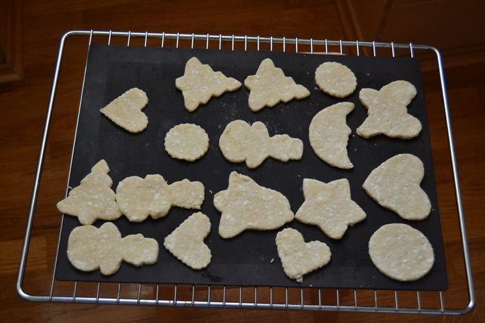 Раскатываю тесто не очень тонко, где-то 0,5 см толщиной. Выдавливаю фигурки.
