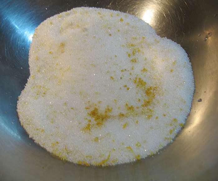 Первое, что меня заинтересовала это то, что сахару нужно дать настояться с лимонной цедрой. Мне это очень понравилось, лимонная цедра отдала свой аромат сахару. Лимонный аромат ярче чувствовался в кексах.