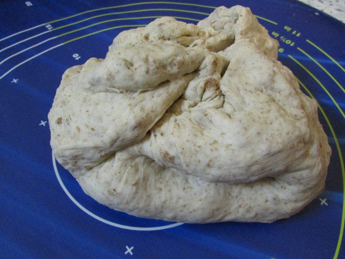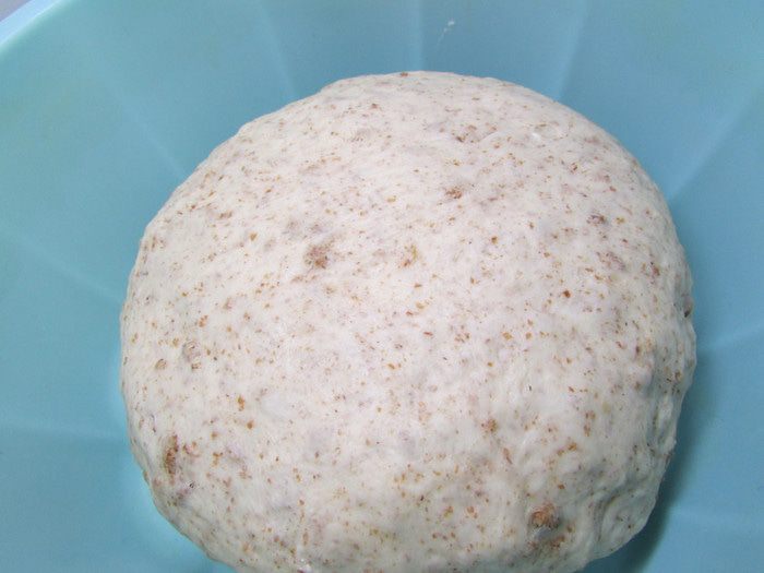В дрожжевую смесь добавить соль, муку, отруби и растительное масло. Замесить плотное, но мягкое тесто. Может быть, понадобится больше муки (все зависит от муки).