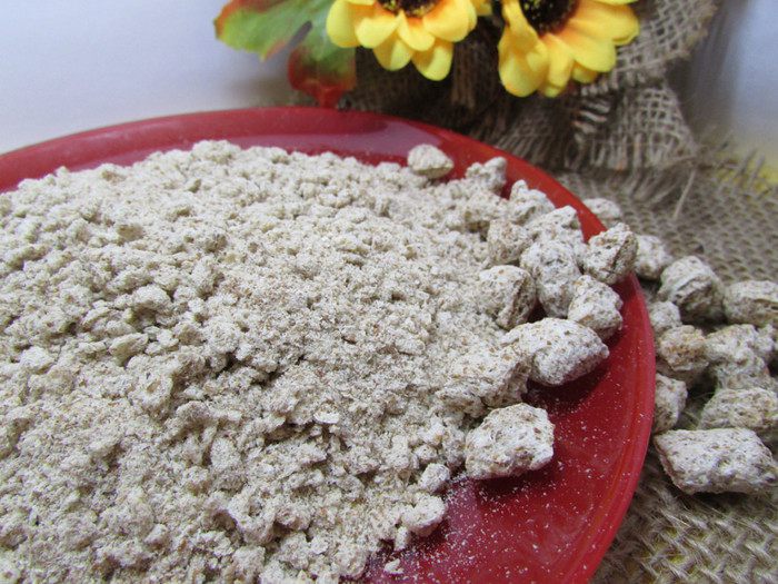 Выложить отруби в чашу блендера и измельчите их.