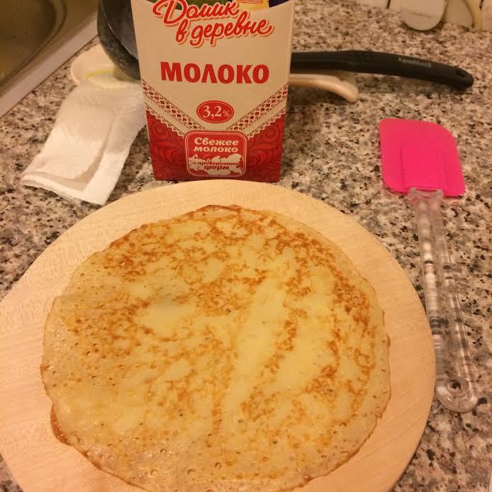 Сковороду нагреть, смазать раститетьным маслом и начать выпекать блины.