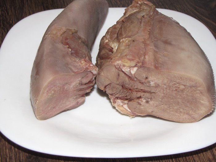 Готовый язык поместить в холодную воду и снять кожицу. Дать языку остыть в течении часа.
