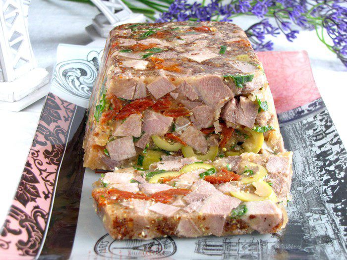 Франция у меня всегда ассоциируется с праздником. А французская кухня с изысканными и необычными блюдами. Сегодня у меня как раз такой рецепт. Террин из языка с добавлением оливок, вяленых томатов и зелени!