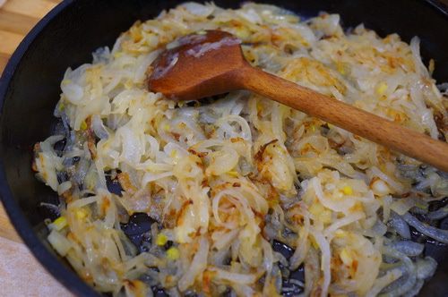 Пережариваем лук на растительном масле до золотистого цвета.
