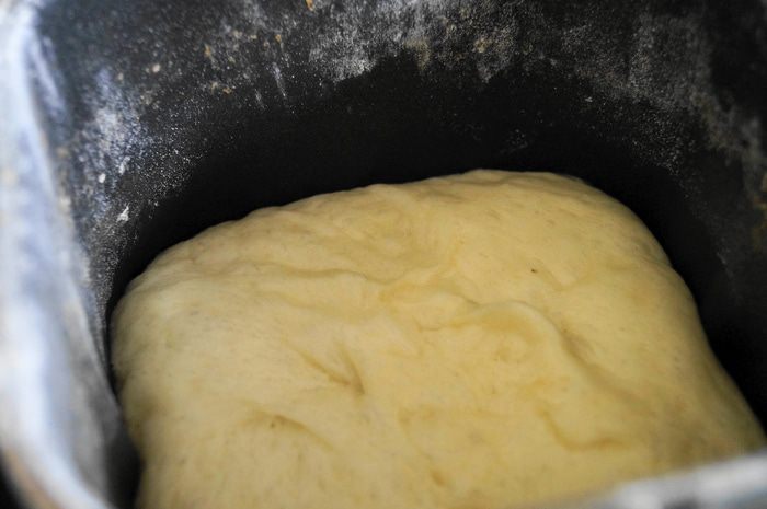 В миску от хлебопечки: налить молоко, добавить соль, сахар, растительное масло, муку и дрожжи. Поставить на хлебопечке режим "Тесто". Через 1,5 часа будет готово пышное и воздушное тесто.