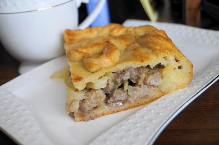 Этот пирог можно подать как к чаю, так и как отдельное блюдо, будь то обед или ужин. Очень сытно и вкусно. Тесто получается тонким и вкусным, а начинка сочная и ароматная. Мясо подойдет любое: говядина, баранина, свинина или курица, но если брать свинину, то пирог получится более сочным.