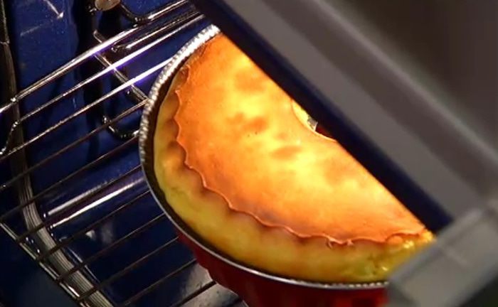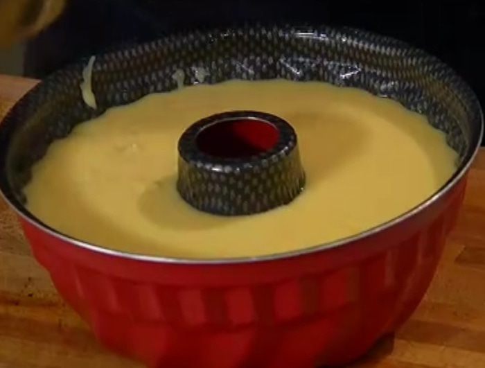 Форму для кекса смазать растительным маслом, влить тесто и выпекать в разогретой духовке около часа.