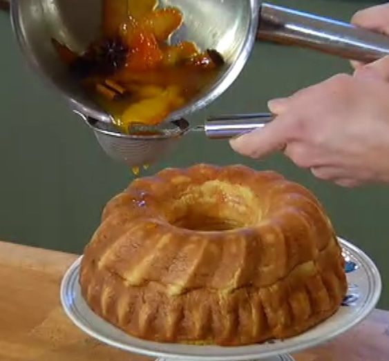 Приготовить сироп: в небольшой кастрюле соединить апельсиновый сок, цедру, нарезанную полосками, корицу, бадьян, 4 ст. ложки коричневого сахара и уварить на небольшом огне, чтобы получился сироп.