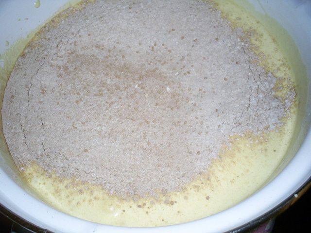 Мы должны получить густую светлую массу, увеличенную в объеме в 2-3 раза.