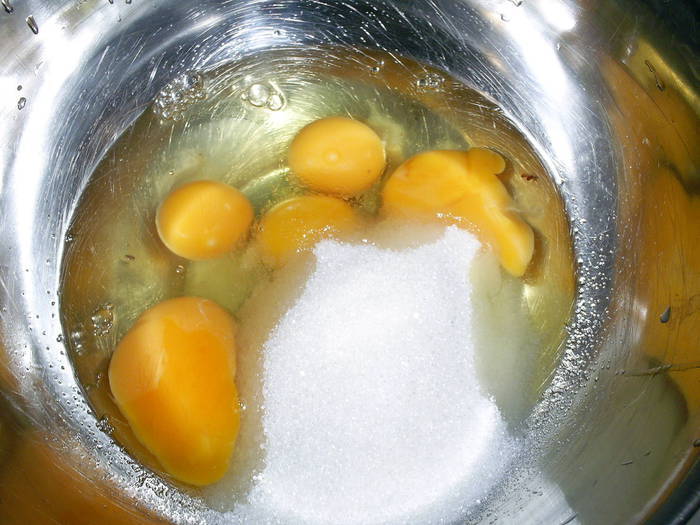 Яйца комнатной температуры взбиваем с сахаром примерно 10 минут.