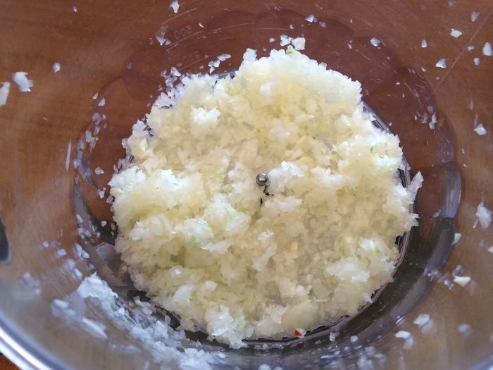 Смешайте измельченный лук, яйцо, фарш и измельченный хлеб - и тщательно замешайте руками до однородного состояния. Добавьте соль по вкусу. Получившийся фарш не должен быть крутым, а должен быть мягким и воздушным. Если фарш получается достаточно крутой - добавьте пару столовых ложек молока, и снова перемешайте. При желаете вы можете добавить в фарш мелко рубленую зелень или несколько столовых ложек зеленого горошка, порезанной отварной морковки. Замешивать ингредиенты нужно уже ложкой, чтобы их не помять.