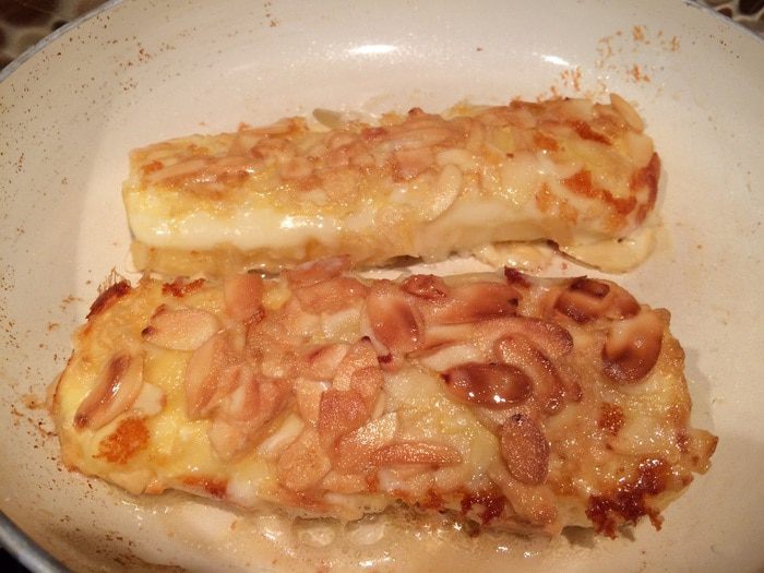 На очень очень очень хорошо разогретую сковороду вылейте ложку масла (опять же кто не париться можно и и две и три даже ложки масла, это уже фритюр почти, но на одной тоже великолепно жариться). Кстати попробуйте для жарки масло из виноградных косточек или арахисовое, они вообще не дымят. Выкладываем сулугуни и 3 минуты , убавляем огонь до среднего, не трогаем, потом чуть толкаем лопаткой если отлично поддается- переворачиваем, если еще прилипший- ждем еще пару минут.