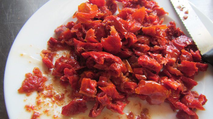 Вяленые томаты мелко режем.