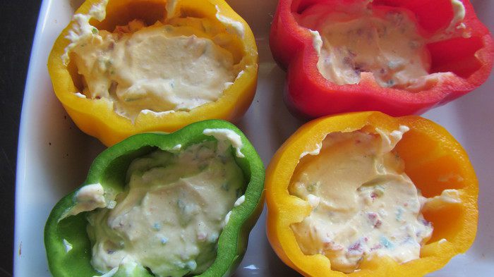 Очень вкусные перчики получаются с такой начинкой, мы их кушали теплыми, но уверена, что и в холодном виде они хороши) по рецепту начинка рассчитана на 3 больших сладких перца, при этом в моем случае они заполнились не полностью. Мне кажется, что еще лучше будет использовать небольшие перчики, чтобы порций было побольше, да и тогда заполнить их будет легче. А вообще это очень вкусная закуска, поэтому буду рада, если и вы попробуете))