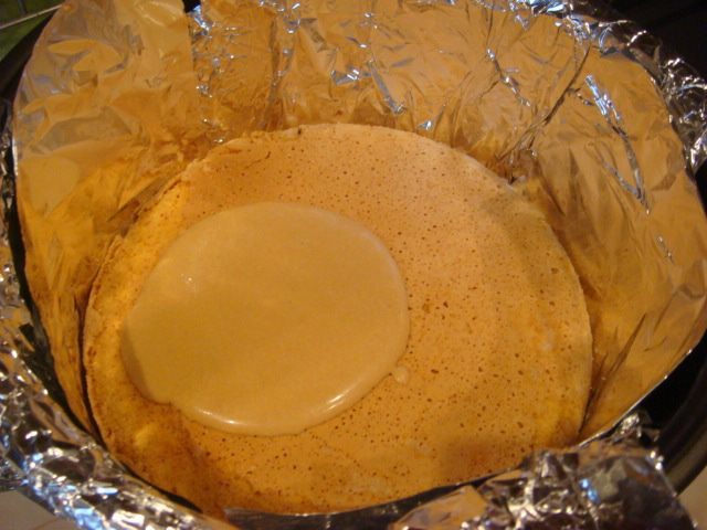 -Бисквит: яйца+сахар взбить миксером +муку с разрыхлителем + шафран, перемешать на маленкой скорости.