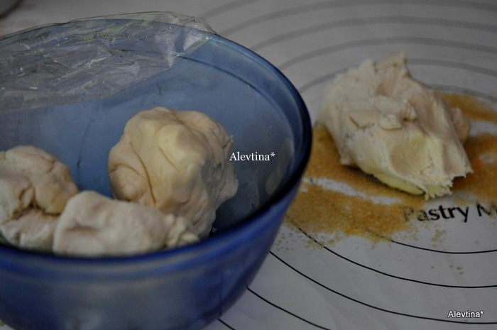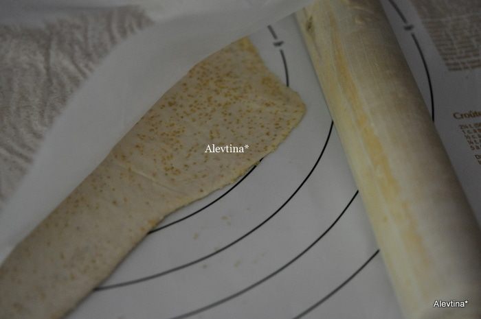 Затем разрезаем раскатанное тесто ножом или ножом для пиццы, для печений.