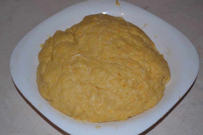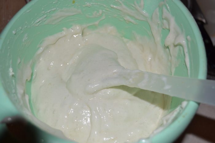 Для начала готовим тесто №1. Сливочное масло (или маргарин) немного размягчаем, добавляем муку, желтки, сахар, разрыхлитель, молоко и замешиваем мягкое тесто. Делим тесто на 2 части.
