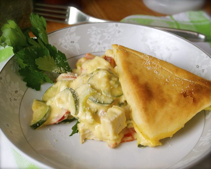 Пшеничные лепешки, запеченный поверх курицы с овощами в сырном соусе, служат приятной заменой обычному гарниру из картофеля или риса.