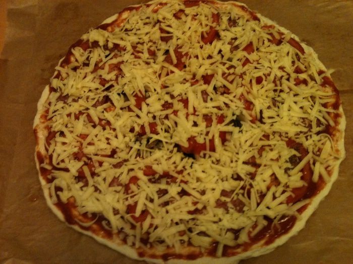 Немного времени и наслаждаемся тонкой, хрустящей пиццей!