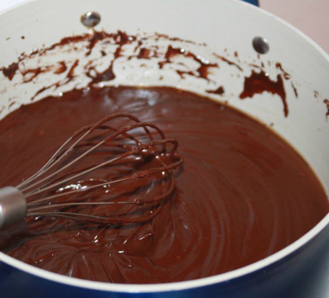 Чай достать, сливки вернуть на плиту, довести до кипения, добавить масло и шоколад. Перемешивать до тех пор, пока шоколад не растает. Затем остудить 5 минут и по одному добавить желтки.