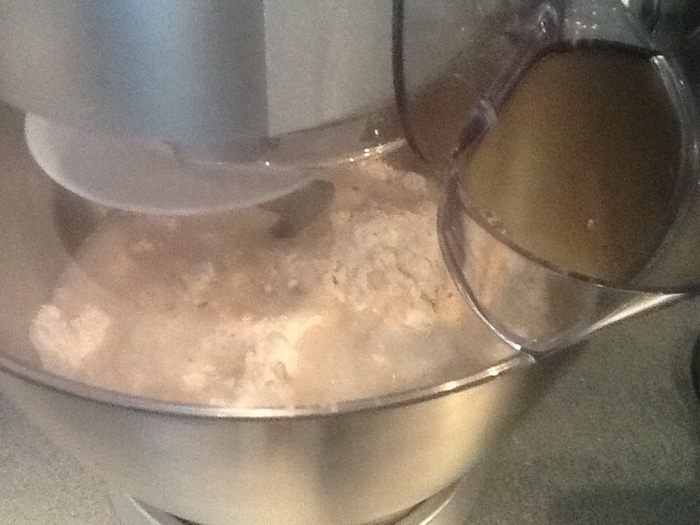 Замешиваем тесто,я делаю это в комбайне,сначала на низкой скорости,затем на 2, минут 6. Мой помощник справился с задачей отлично.