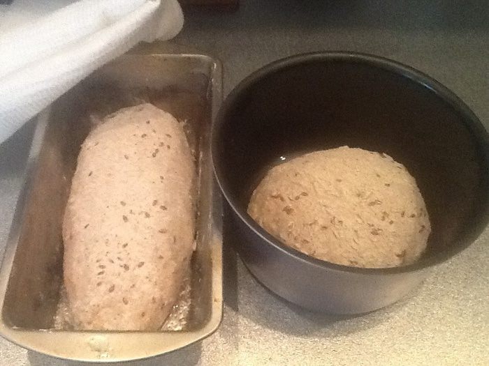 Из каждого шара формируем батон ,смачиваем его немного водой,обваливаем в муке с зернами и укладываем в форму, где-то на один час (форма 22 см.).У меня только одна форма нужного размера,поэтому пришлось использовать форму для кулича.