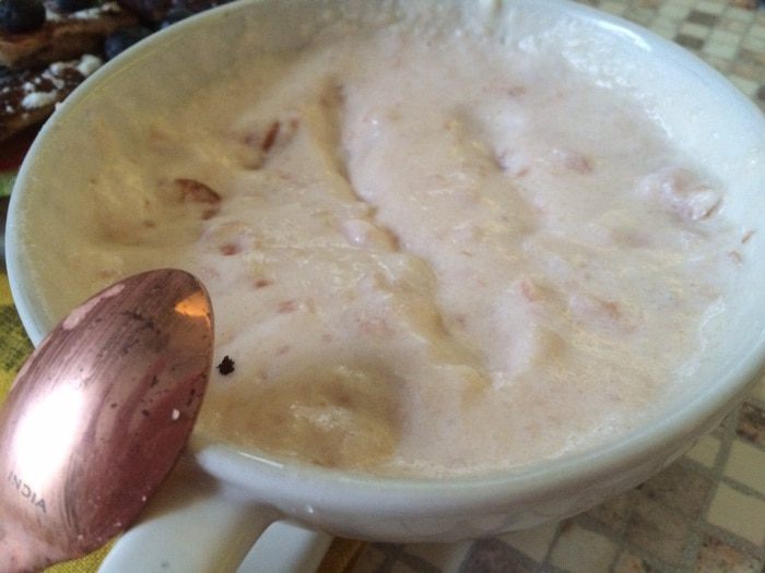 Вынуть ванильный стручок, добавить все остальные ингредиенты для оладьев, перемешать и пробить блендером , тогда гречневые зерна и овсяные хлопья разобьются в пюре однородное, консистенция густой сметаны. Если суховато- воды или молока, если жидковато - муки. Дать постоять хотя бы минут 15, можно 30 минут.