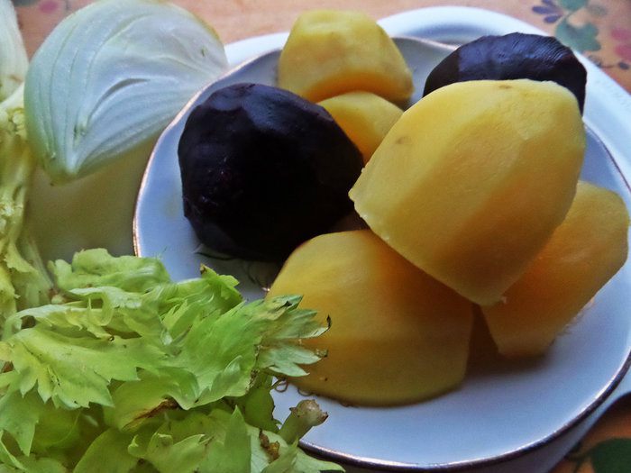 Овощи отварить заранее.