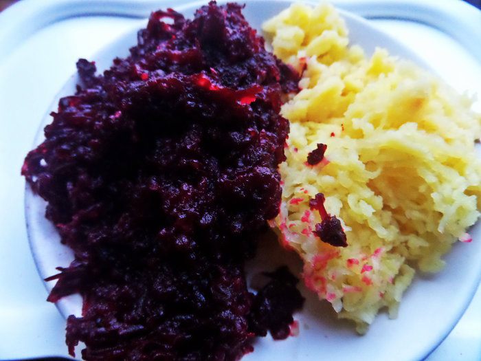 Натереть остывшие на тёрке,можно вместе!