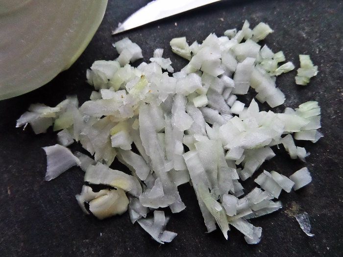 Лук мелко порубить.
