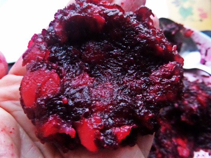Расплющить на ладони ложку овощной массы.