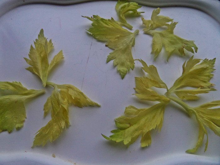 Приготовить заранее плоскую тарелку и выложить листики петрушки или сельдерея. Смешать масло и сок.