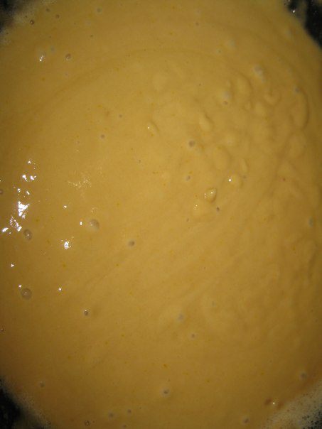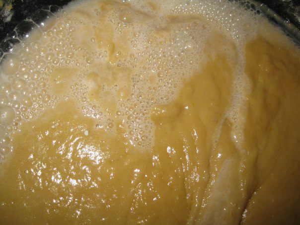 Помешивая, добавляем муку до образования консистенции густой сметаны. Очень красивое тесто получается.