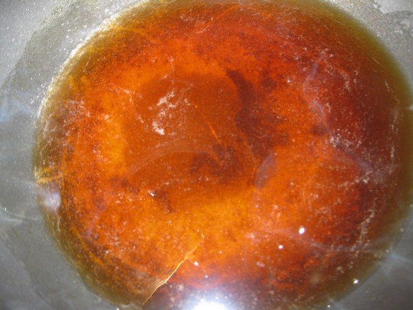 Заливаем сахар крепким горячим чаем и продолжаем греть, помешивая, чтобы сахар растопился. Даем немного остыть.