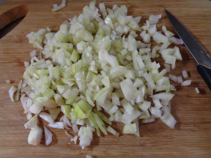 Репчатый лук и порей мелко порезать.