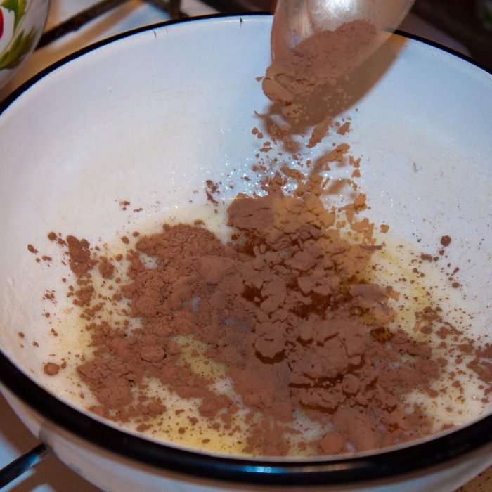 В однородную массу добавляем какао.