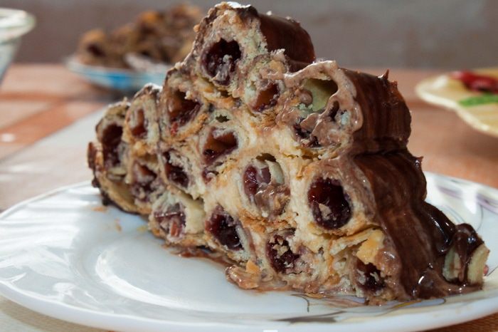 Получившийся торт ставим в холодильник примерно на 1 час.