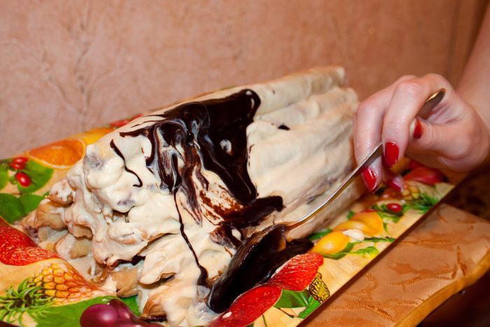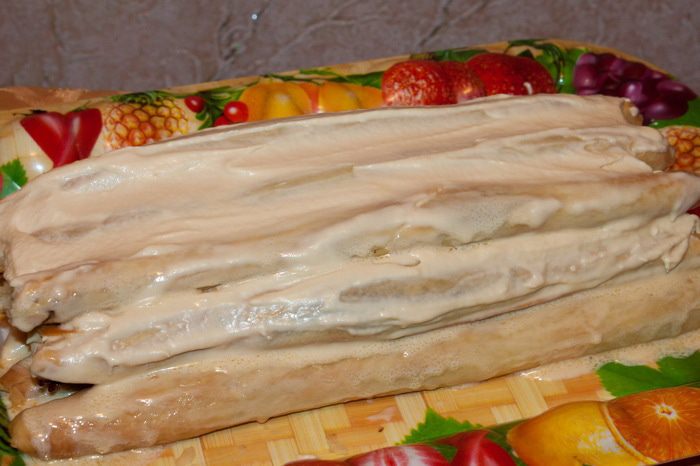 Обильно смазываем их кремом.