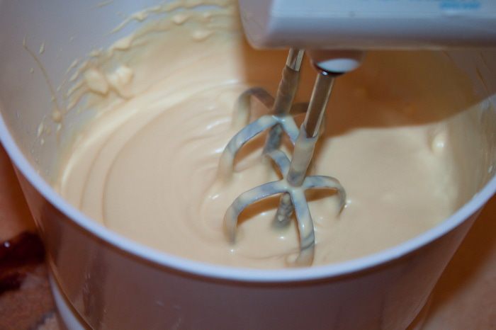Взбиваем миксером и следим за консистенцией, чтоб масло не взбилось комочками.