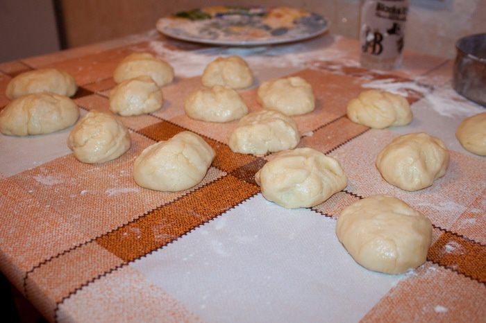 Получившееся тесто разделить на 15 равных кусочка и поставить в холод на 20 минут.